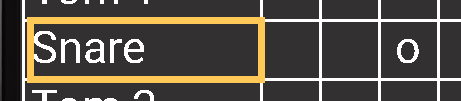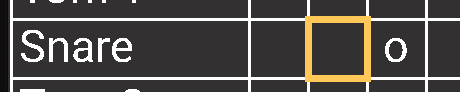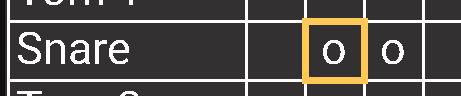 The left-hand side of the table shows the avaiable percussion instruents and corresponds to basic drum notation. Across the top of the table, you will see measure numbers and below that, the beats within the measure, where whole beats are notated with a number. Each cell in the underlying grid are the music notes that corresponds to an instrument and beat where you indicate what is to be played, simiilar to placing a note on a music staff.