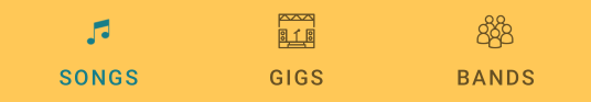 Pressing one of the displayed items (song, gig, or band) will open that item for edit.
